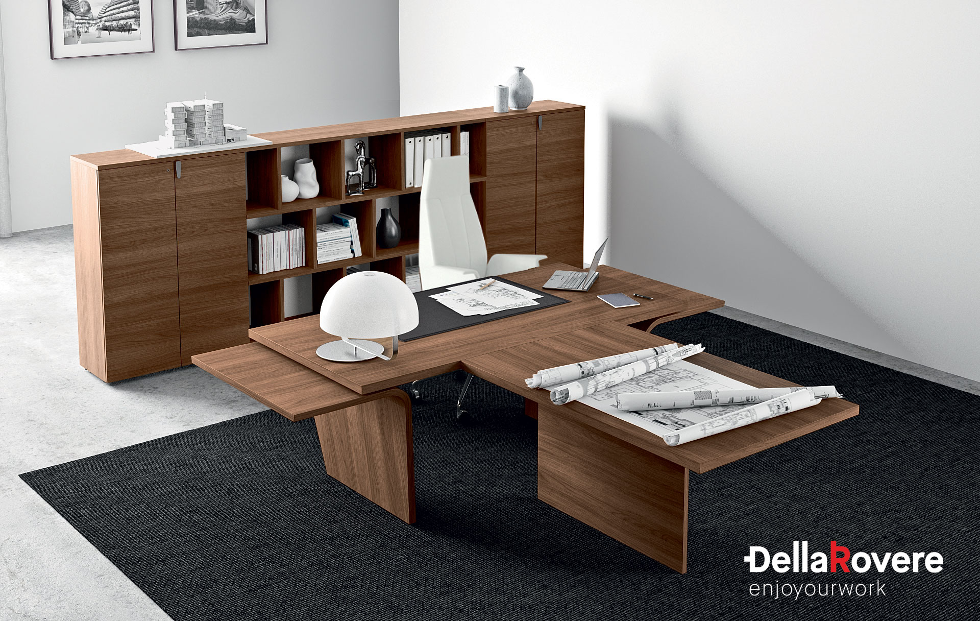 Della Rovere presents Larus, its a directional collection designed by Studio Stramigioli Associati. The desks Larus can be realised and mixed by creating more than 200 combinations.